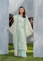 3 piece unstitched lawn chickenkari heavy embroidered shirt with chiffion printed dupata with four side embroidered or plain lawn back and trousers
