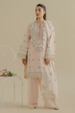 3 piece unstitched lawn heavy embroidered shirt with chiffion printed dupata and plain back and embroidered trouser