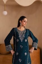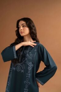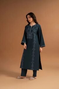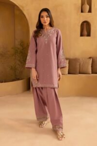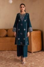 2 piece unstitched marina mebroidered dress with marina embroiered trousers