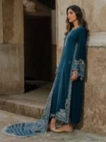 3 piece unstitched dhanak embroiered dress with printed wool shawl and plain dhank trousers